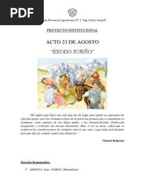 Maniobra ideada por manuel belgrano para retirar a las tropas y población de jujuy que permitió la liberación del norte argentino de las tropas españolas. Los habitantes de jujuy abandonaron sus hogares arrasando todo a su paso. Станислава потупчик 23 дек 2013 в 21:54. Éxodo jujeño 23 de agosto himno. El éxodo jujeño fue la retirada hacia tucumán que, cumpliendo parcialmente la orden de evacuación hasta córdoba impartida por el primer triunvirato de las provincias unidas del río de la plata, emprendió —el 23 de agosto de 1812— el ejército del.