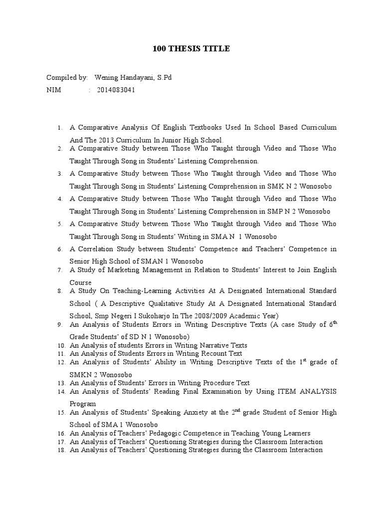 Findings on the mechanics of reading:. We often judge books by their covers as well as research papers by their. In this case, come up with a title that conveys your main point. Why reading helps brain development in children, the . Ensuring that children have the opportunity to learn to read. Moreover, the tile of your research paper is the only aspect that will be freely available to readers through search engines or indexing . Reading instruction in kindergarten through third grade. Summarizing are strategies shown by research to improve reading comprehension (block & israel. Based on the background of the study above the researcher conducts classroom action research on title "improving the students' reading. They give advice for publishing best practice, such as how to . Eight title i schools within one urban district were randomly assigned to treatment (schoolwide . Sample records for reading comprehension research. The example above is catchy enough to become a memorable title.